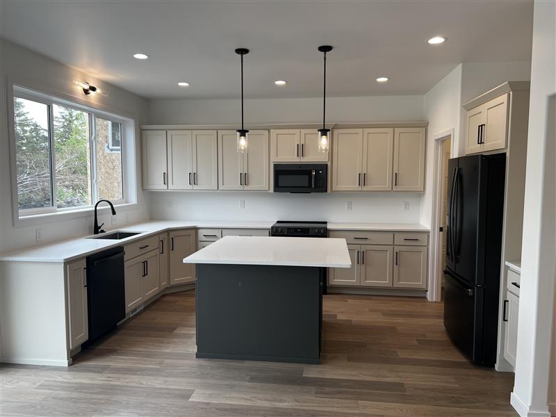Black windows and modified kitchen layout