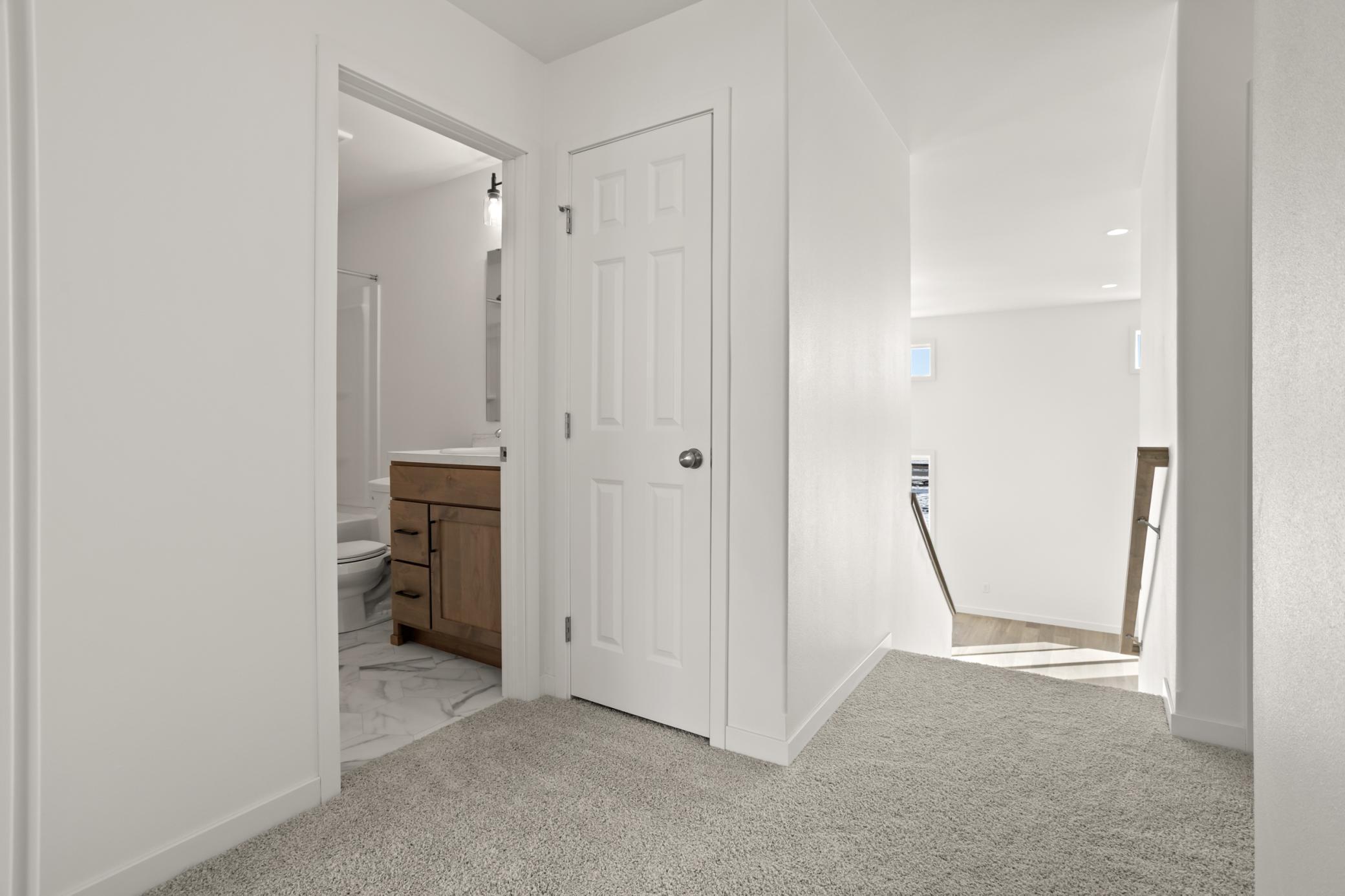 The lower level expands the living space with a second family room, a third bedroom, a full bathroom, and a utility room. This Charles model in the Fargo development of Selkirk is a beautifully crafted home that blends open-concept design, functional living spaces, and timeless appeal.