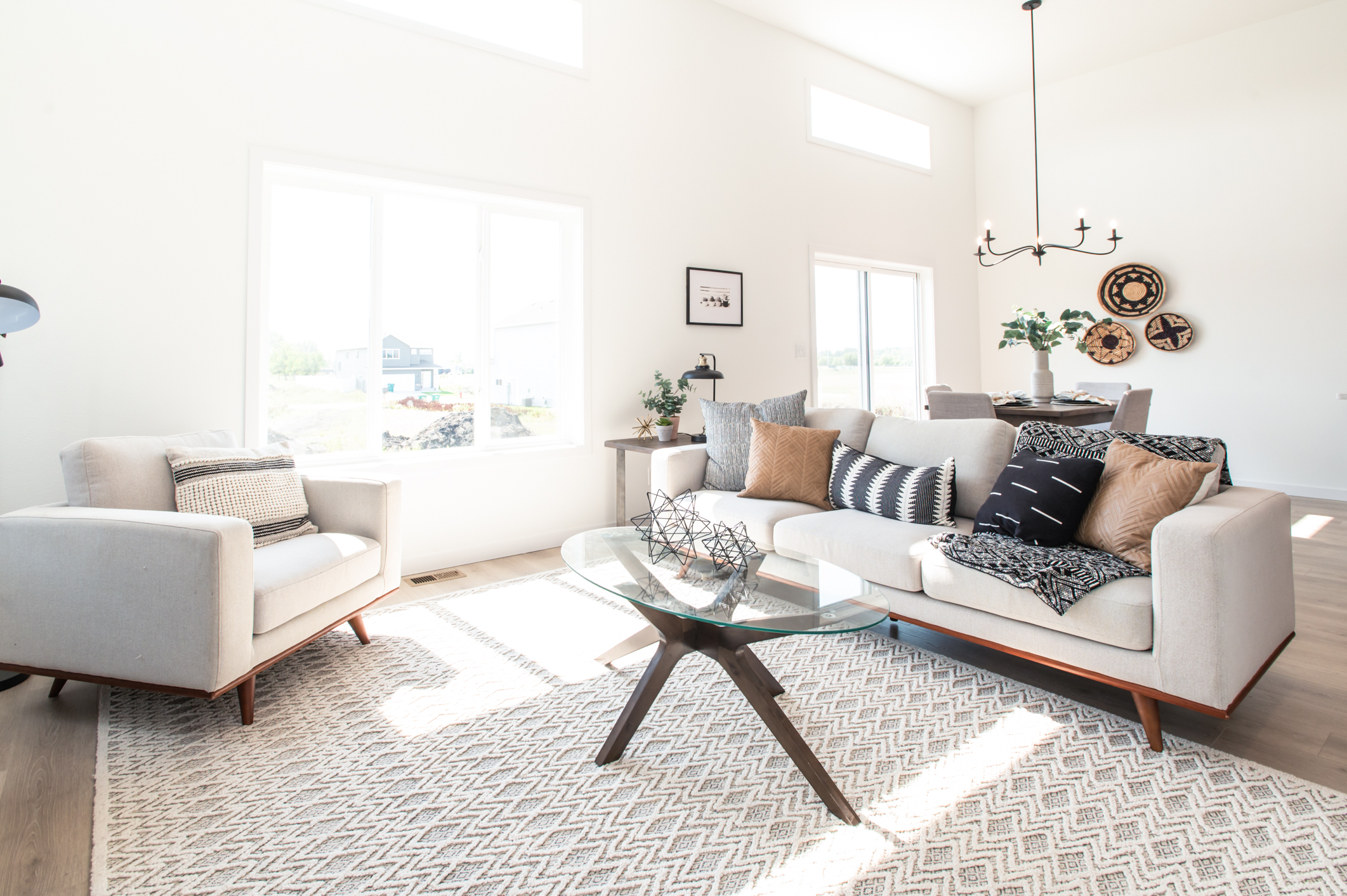 A bright entryway welcomes you into this quality-crafted model home. At the heart of the home, the kitchen is a showstopper, showcasing striking two-tone cabinetry in brooding tones and sleek quartz countertops that compliment the space. The thoughtfully designed layout supports both everyday routines and special occasions with ease.